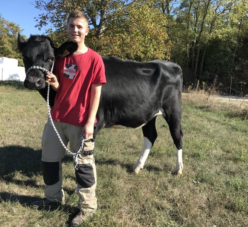 À 18 ans, Nicolas Gollentz s’apprête à vivre son deuxième concours départemental de Habsheim. Ce jeune éleveur d’Osenbach, fan de génétique, se prépare actuellement à son futur métier d’agriculteur à travers le BTSA ACSE (Analyse, Conduite et Stratégie de l’Entreprise Agricole) qu’il suit au lycée agricole de Fontaines, en Bourgogne. Voilà plusieurs semaines qu’il profite de ses week-ends pour préparer Nanouchka, sa génisse de 16 mois inscrite au concours prim’holstein. Pendant la semaine où il est à l’école, c’est son père qui la sort et qui s’en occupe.