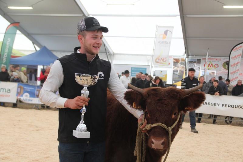 À l’ouverture du ring, la tension est palpable chez les bêtes, comme chez les éleveurs. Le soulagement arrive rapidement pour Samuel Germain et sa compagne Amélie, éleveurs de salers à Hadol dans les Vosges. Leur génisse, Nicotine, « a tapé dans l’œil » du juge Paul Poncin « dès qu’elle est entrée ». « Elle a une belle rectitude - une vache qui a une bonne rectitude est une vache qui vieillit bien -, un beau bassin et de bons aplombs. Elle est très équilibrée dans son travers, avec une profondeur de poitrine. Une très bonne génisse pour l’avenir ».