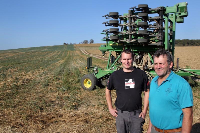 Le Gaec de Belle vue surplombe légèrement Uhrwiller. Depuis la petite ligne de crête qu’il occupe le regard est arrêté au nord comme au sud par le sommet des collines voisines. Au total, ce ne sont pas deux mais quatre bassins-versants qui peuvent déverser les eaux de fortes pluies dans les rues de la commune. La problématique des coulées de boue et la pression exercée par les élus municipaux sont une première raison qui a poussé Michel et Sébastien Pfeiffer à abandonner le labour pour virer progressivement à l’agriculture de conservation.