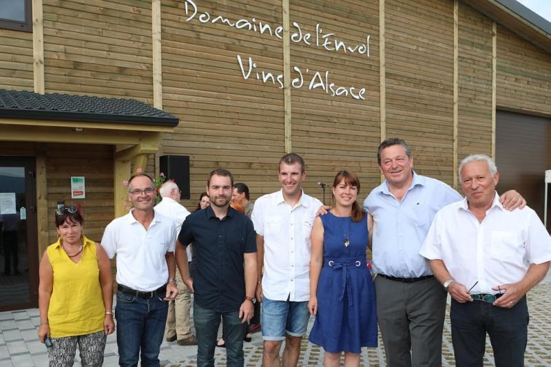 « C’est plus qu’un métier que nous avons choisi, c’est un état d’esprit, un projet de vie. » La famille Hirsinger, Bernard, Manuela, Daniel et Catherine, et Raphaël Marchal, avaient la gorge un peu serrée le 29 juin dernier, lorsque chacun a pris la parole pour conter son parcours et expliquer ses motivations. C’était l’inauguration du Domaine de l’Envol, tout nouveau domaine récoltant-manipulant d’une vingtaine d’hectares à Ingersheim. Nombre d’amis et de personnalités y prenaient part.