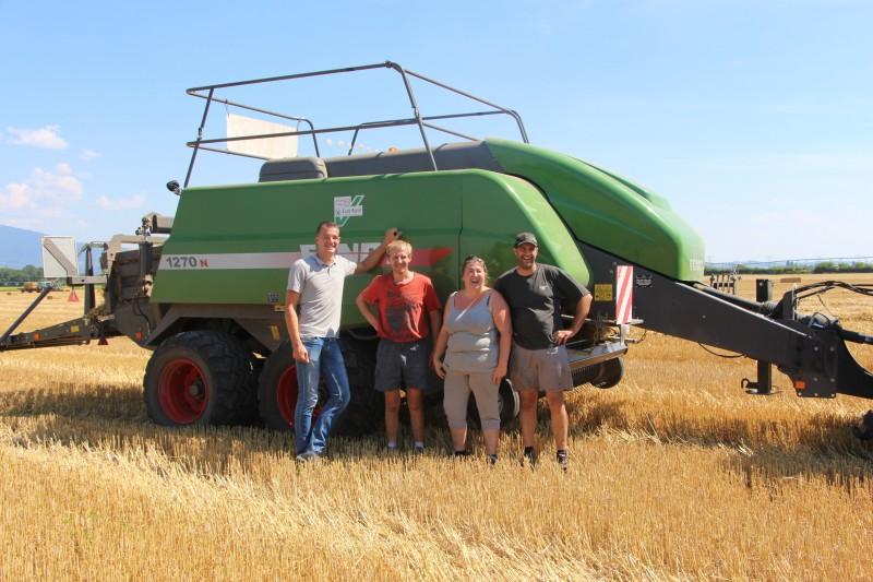 Historiquement, la famille Weiss a toujours vécu de l’agriculture. Aujourd’hui encore, l’exploitation cultive le maïs, le blé, l’orge ou encore le soja. C’est en 1999, suite à un sinistre, que Bernard Weiss décide de diversifier ses activités. Il crée la SARL Travaux paille commerce et service. L’activité consiste à faire de la prestation de service en pressage de paille et de l’achat-revente de paille sur champ. « Nous répondons aux demandes de nos clients qui manquent de paille. Localement, mais également à l’export. Là, un camion vient de partir pour livrer en Suisse et en Allemagne.