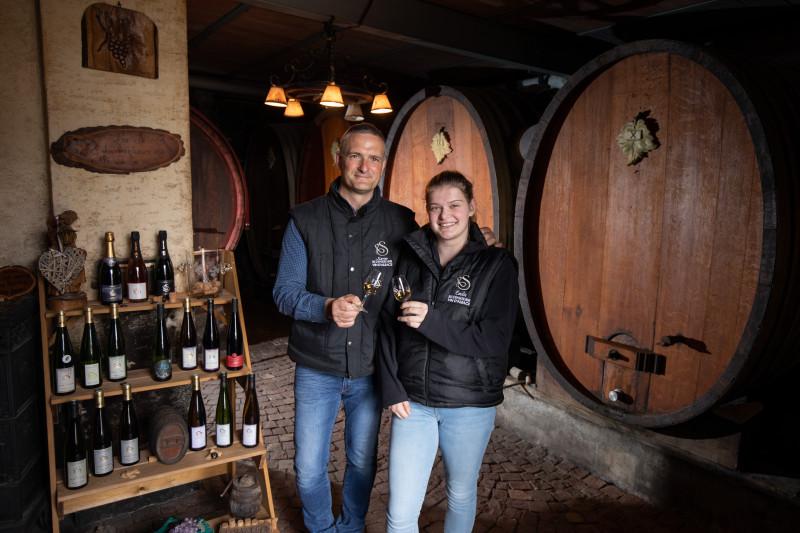 Xavier Schneider et son épouse Sophie cultivent 10,40 ha de vignes situés sur les bans de Gueberschwihr, Hattstatt et Pfaffenheim. « Pour rationaliser le travail », quelques parcelles situées à Rouffach ont été cédées en fermage car trop éloignées du siège de l’exploitation. Les vignes sont implantées sur deux grands types de sol : argilo-calcaires et limono-argilo-sableux. « Nous avons toujours privilégié les terrains de qualité », précise Xavier, dont le père exploitait déjà 3,5 ha dans le grand cru Goldert.