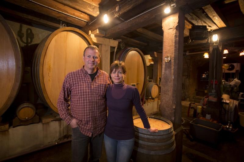 Ce n’est pas une surprise. Pour Nicolas et Sylviane Simmler, les millésimes 2013, 2014 et 2015 n’ont pas été les plus prolifiques de leur carrière. Cette succession de petites récoltes et la nécessité de vendanger un peu plus, incitent Nicolas à passer de une à deux arcures en 2016. La mesure produit son effet. Le domaine frôle les 80 hl/ha. Sa plus grosse vendange depuis son installation en 1990. Une bonne nouvelle ? À la fois oui et non aux yeux de Nicolas. Oui, parce que ce volume lui redonne de l’air. Non, car si la qualité rentrée n’est pas mauvaise, il ne s’en satisfait pas.