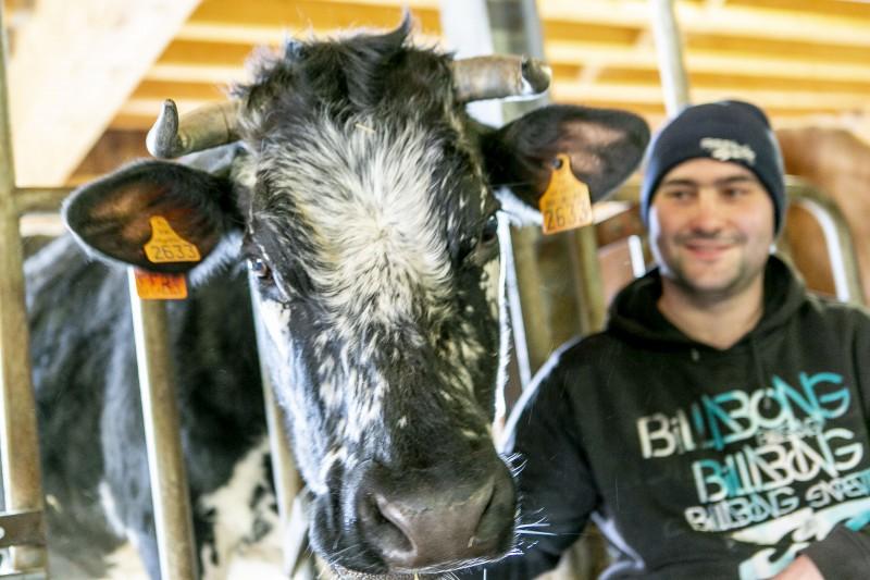 Elles sont zen ces vaches. Même entravées. Dans l’étable de la ferme du Boskopf, sur les hauteurs de Saint-Amarin, le troupeau de Pierre-Édouard Kornacker mange tranquillement sa ration quotidienne en attendant le retour des beaux jours. Si leurs pattes doivent forcément avoir envie de se dégourdir un peu, les quinze Vosgiennes et les trois Montbéliardes de ce cheptel ne semblent pas particulièrement pressés de s’échapper de ces murs. Il faut dire que tout a été pensé pour leur bien-être lors de la construction du bâtiment, il y a cinq ans. Le tout, dans une stabulation entravée.