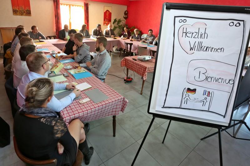 Un speed dating à la sauce agricole. Quatre petits groupes de jeunes sont assis autour de nappes à carreaux rouges et blancs. Les treize Français et Allemands disposent d’un quart d’heure pour faire connaissance. Nom, âge, type d’exploitation, loisirs… Une rencontre organisée en marge d’une réunion du conseil d’administration du réseau interrégional international pour la formation et le développement rural (Ri2), mardi 7 novembre.
