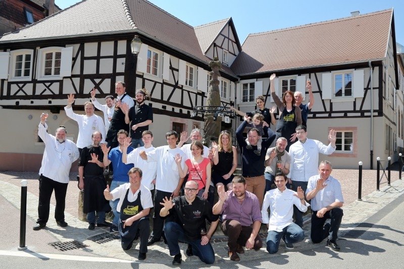 Le double rendez-vous des saveurs invite pour 13 h. Mais les premiers fans déambulent dans les rues de Blienschwiller à peine midi passé. Un peu plus tard, à l’ombre de l’avancée procurée par la Metzig, l’ancienne boucherie du village, Emeline, la secrétaire du syndicat d’initiative local, pointe les inscrits qui commencent à faire la queue. Quatre viticultrices assurent les arrières en remettant porte-verre, verre et fascicule comportant le « plan de route ».