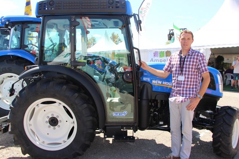 La nouvelle gamme du T4V de New Holland est dotée d’un nouveau moteur qui répond aux normes anti pollution. La nouvelle cabine a notamment un double système de filtration qui permet de passer d’un filtre à poussière à un filtre charbon actif homologué catégorie 4 en une simple pression sur un bouton. « C’est la première fois que nous le présentons à la foire aux vins, c’est le premier en Alsace. Nous le mettons en valeur pour permettre à un maximum de gens de le voir sur un minimum de temps », explique Jean-Christophe Schmitt, responsable commercial chez ACS Andelfinger.