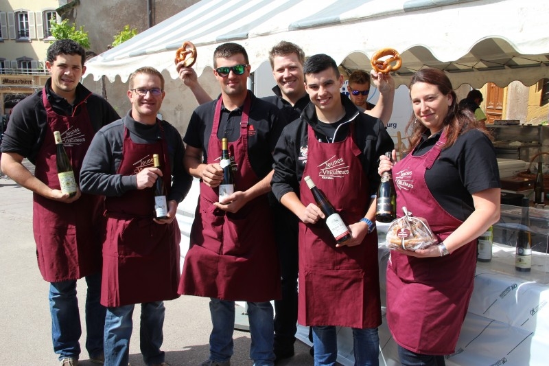 En ce long pont de la Pentecôte, les jeunes viticulteurs, indépendants, coopérateurs ou négociants avaient, comme chaque année, installé leurs chapiteaux en face du Koïfhus à Colmar. Une rencontre sans intermédiaires, du producteur au consommateur, avec comme objectif, la découverte et la vente d'une sélection des meilleurs cépages issus de leurs exploitations. Un grand choix de vins d'Alsace accompagnés des incontournables tartes flambées, kougelhofs et autres bretzels.