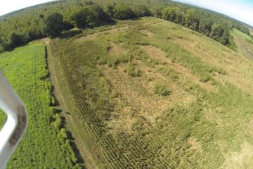 À gauche, une parcelle de miscanthus, à droite, une autre de maïs. Au fond, la forêt. Dans cette configuration, où ils trouvent à la fois le gîte et le couvert, les sangliers font d'énormes dégâts.