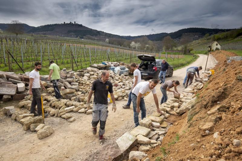 Mon chantier permet-il un approvisionnement facile en pierres ? Est-il accessible à un engin ? Est-ce que je dispose d’assez de pierres pour mener mon projet à son terme ? Telles sont les quelques questions préalables qu’un candidat à la construction d’un mur en pierre sèche doit se poser avant de démarrer pareille entreprise. Christian Beyer a choisi de ceindre d'un muret la limite sud du clos Lucas et Émile Beyer. Il longe un chemin de fond de vallée en très légère pente. « La technique me plaît.