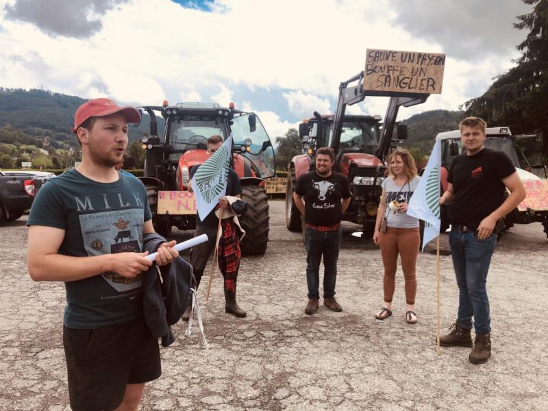 Il est 13 h 30 quand une dizaine de tracteurs et une vingtaine d’agriculteurs se retrouvent sur le parking d’un restaurant situé peu avant Saint-Amarin. Les professionnels répondent à l’appel lancé par la FDSEA et les Jeunes agriculteurs du Haut-Rhin, et notamment ceux de la vallée. Une mobilisation qui n’a pas été difficile à obtenir tant les agriculteurs en ont ras-le-bol. Les dégâts de sangliers et de cervidés sont de plus en plus nombreux et toujours plus importants.