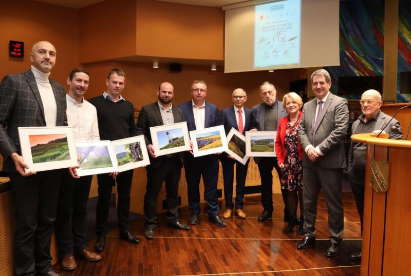 Jean Rottner, président de la Région Grand Est, aux côtés de Pascale Gaillot, vice-présidente de la Région en charge de l’agriculture et de la viticulture, et de Jackie Helfgott, président de la Commission tourisme, a signé, mardi 17 décembre 2019, à Metz, le contrat de filière viticulture du Grand Est 2019-2021 avec les représentants des interprofessions*. Ce contrat, signé pour trois ans, définit les orientations stratégiques et les priorités d’actions à mener en s’app
