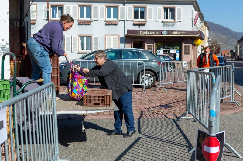 Depuis le 2 avril, des producteurs livrent des paniers de légumes ou de produits laitiers aux habitants d’Ammerschwihr, directement chez eux ou sur la place de la mairie. Une manière d’entretenir le lien social et économique entre agriculteurs et consommateurs contraints de s’adapter à la fermeture des marchés de plein air.