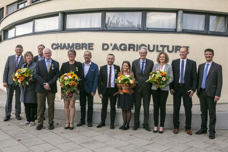 Quatre « poireaux » ont été remis lors d’une cérémonie organisée à la Maison de l’agriculture, à Sainte-Croix-en-Plaine. C’est tout d’abord Marie-Cécile Claudepierre qui a reçu sa médaille de chevalier dans l’ordre du Mérite agricole des mains du président de la Chambre d'agriculture d’Alsace (CAA), Laurent Wendlinger. Élue à la CAA depuis 2013, Marie-Cécile Claudepierre est engagée depuis près de 40 ans dans l’agriculture. Après avoir travaillé sur l’exploitation familiale, elle reprend, en 1984, la ferme de ses beaux-parents au côté de Gérard, son époux.