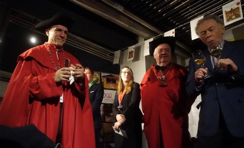 Sous la houlette du Grand Maître 2018, Martine Becker, flanquée d’une délégation comprenant plusieurs anciens Grands Maîtres et vignerons (David Ling, Pascal Schultz, Erwin Moser, Jean-Paul Goulby et Valérie Beyer) ainsi que le délégué général Éric Fargeas, une soixantaine de convives belges ont découvert (ou redécouvert) les traditions de la plus ancienne confrérie vinique de France : l’art de la dégustation au travers des cinq sens, les caractéristiques des cépages et du terroir alsacien qui les placent parmi les plus grands vins du monde.
