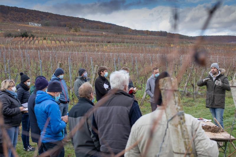 Jean-Claude, Annick, Paul et Thomas Rieflé mènent leur vignoble selon les principes bio depuis 2010. Ils sont certifiés depuis 2014. « Au début, c’est simple. On est plein de certitudes. On laboure un rang sur deux. Le sol est travaillé intensivement. On butte, on débute.