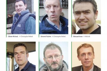 Le couple passe ensuite à la réalisation de l’étiquette avec son imprimeur. Fabienne visite son atelier. « Je me suis rendue compte de la multitude des possibilités techniques qui existent » dit-elle. Elle choisit un papier 90 g. Il est lisse pour les crémants, plus ou moins texturé selon qu’il s’agisse de la gamme « Authentiques » ou des vins de terroir. « Un papier ne doit pas être trop fragile, ni trop difficile à coller. Il ne doit pas davantage être sensible aux courants d’air et à la condensation tout en se montrant résistant à la salissure » signale Jérôme, le salarié du domaine. Fabienne assiste aux tests qui précèdent l’impression de toute la série. Cela lui permet de rendre les derniers arbitrages en ajustant le tir. Elle décide d’apposer un vernis sélectif sur les traits importants du dessin du Mairehiesel ainsi que sur la marque afin de mieux la faire ressortir. Transparent au départ, ce vernis devient noir à l’arrivée pour être plus visible. Certains fonds de couleur sont éclaircis ou, au contraire, foncés.